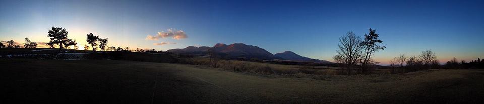 くじゅう連山と久住高原、 マジックアワーがより一段と美しく演出してくれています。 クリックして拡大↓ ↓ 園内からの景色も好きですが、ここからみる景色もおすすめ。 ここで新呼吸をすると、心と体を癒してくれます。