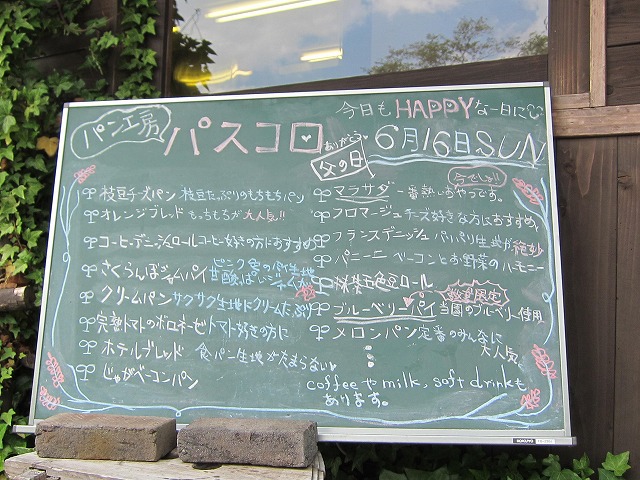 ~ 手づくりパンや パスコロ より ~ 人気のパスコロ食パン、ほんのり甘いふんわり食パンです。 お土産や、モーニングパンにいかがですか?!↓↓ 1本400円 1/2カット220円 ※週末限定での販売となっています。 そんなパスコロ食パンに花公園の焼印が入りました♪♪↓↓ 花公園の思い出を語りながらおうちでパンを食べるのはいかがですか?! パンを買う前は必ずこのボードをチェック!!↓↓ シーズンごとのオススメパンが分かりますよ♪♪