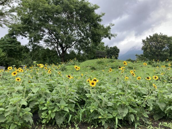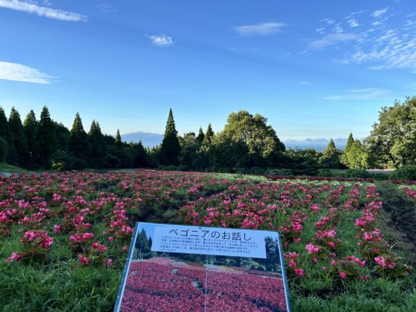 四季彩の丘、ベゴニアはまだまだ株は小さいですが、十分見頃!? そよ風の丘、千日紅も花数が日増しにどんどん増えて色が濃くなっています。 同じくそよ風の丘のジニアもどんどん咲き始めました。 入園ゲート正面の丘ではミニひまわりが見頃です。 先週はサルビアの植付も終了し、花畑の準備が順調に進んでいます。