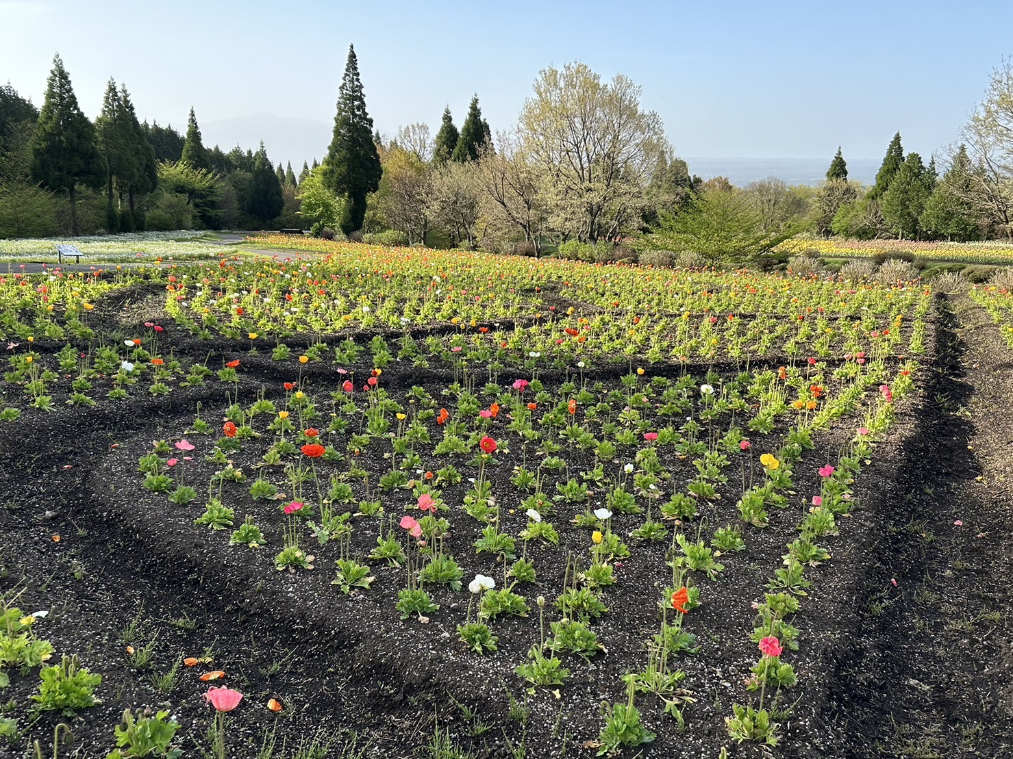 チューリップは見頃、ネモフィラ、ポピーの色づき始めています!