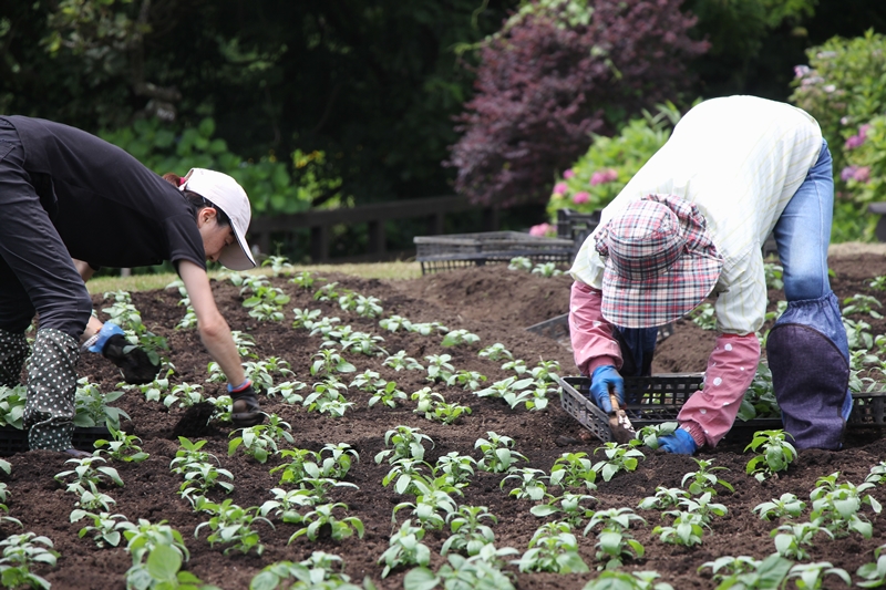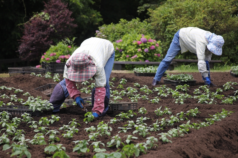 秋にむけてサルビアの植付け作業が始まりました。 今日はフルメンバーでの作業とのことでした。 ・ いつ見ても作業は早く、仕上がりはとても綺麗です。 ・ 今年もサルビアの見頃が楽しみですね** 9月中旬見頃予定となっております。