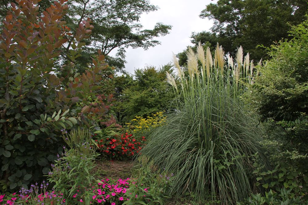 ドライフラワーでも人気の、 パンパスグラスの季節となりました。 久住高原の風に揺れる光景は心地よい。 和名ではシロガネヨシといいます。 存在感があり、この季節のガーデンを彩ります。 まるで、ススキのお化けのようです。 久住ガーデンで見ることができます。 ↓ ↓