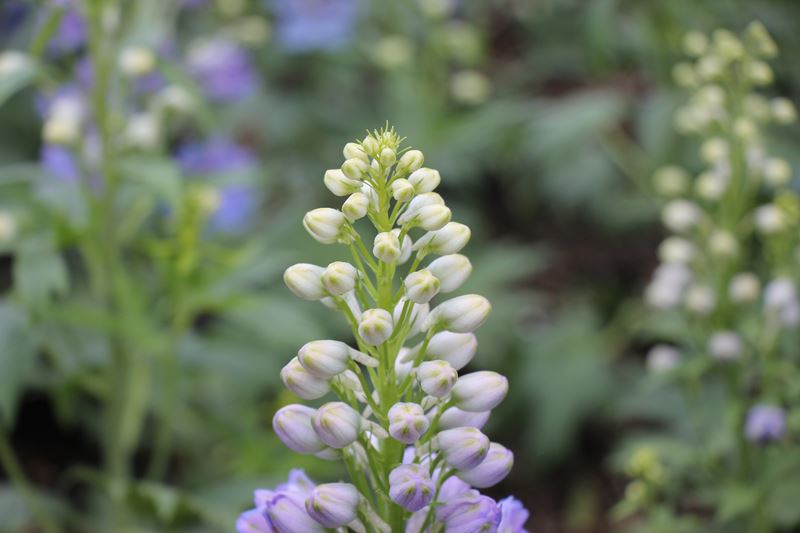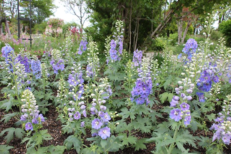 ・ デルフィニュウムが咲き、 久住ガーデンが華やかになりました** ・ 花は貴賓溢れ、とても豪華なお花です。 学名のDelphiniumは、ギリシア語でイルカを意味し、 つぼみの形がイルカに似ていることに由来するそうです。 花の観察が楽しくなる。お花ですね。 久住ガーデンへ是非、お立ち寄りください。