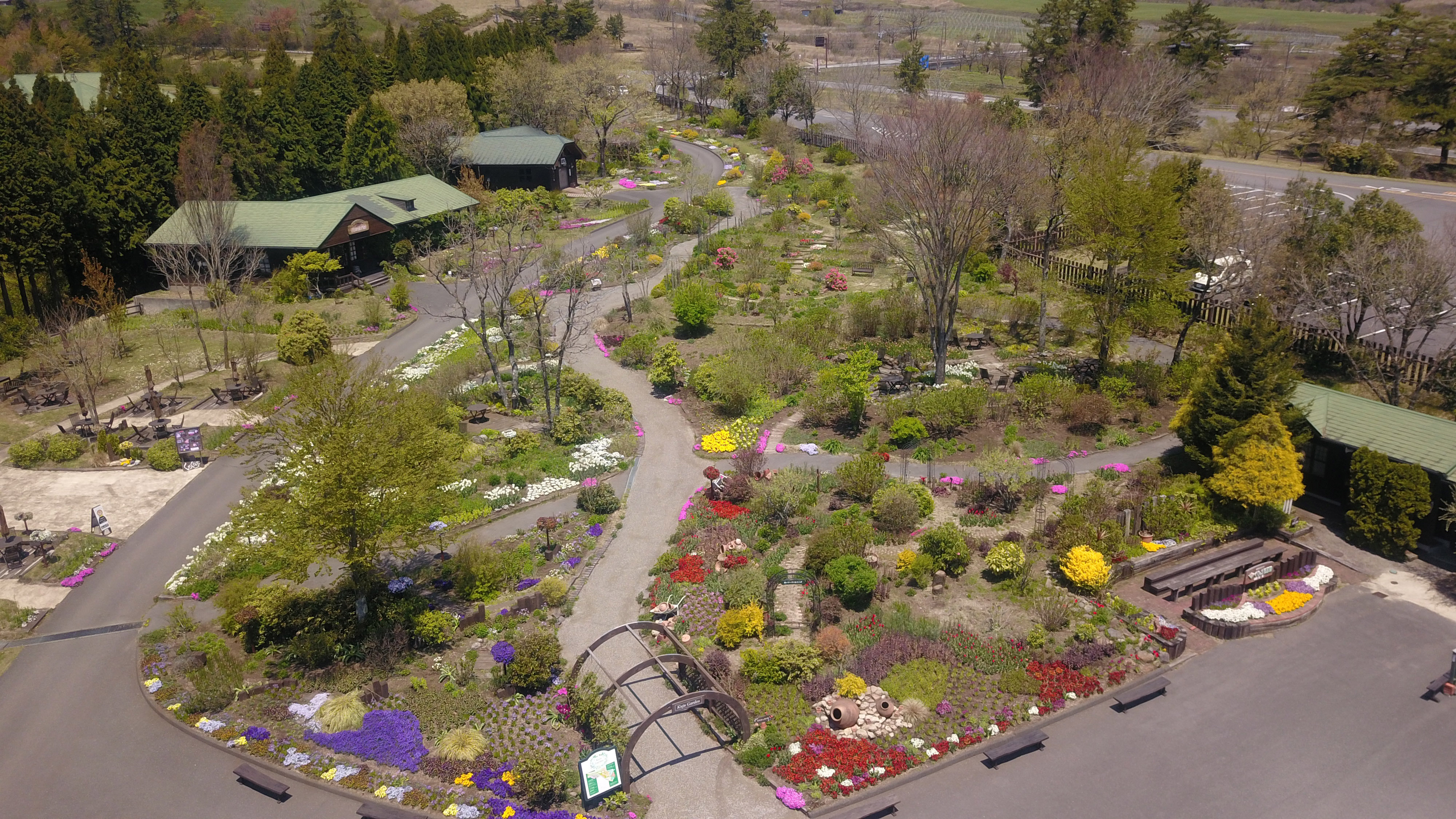 様々な種類の一年草・多年草・宿根草・花木を取り扱いしている、 とても素敵な久住ガーデン(くじゅうガーデン)。 このガーデンではお花たちの色合などの特徴をいかして、 白い花たちの庭・ボーダーガーデン・ベンチのあるお庭など、 テーマにそってお花たちを植えています。 普段なかなか見ることのできない角度からのガーデンの様子です。 ↓ ↓ ・ こちらはドローンで撮影した、 久住ガーデンの様子です。 ↓ ↓