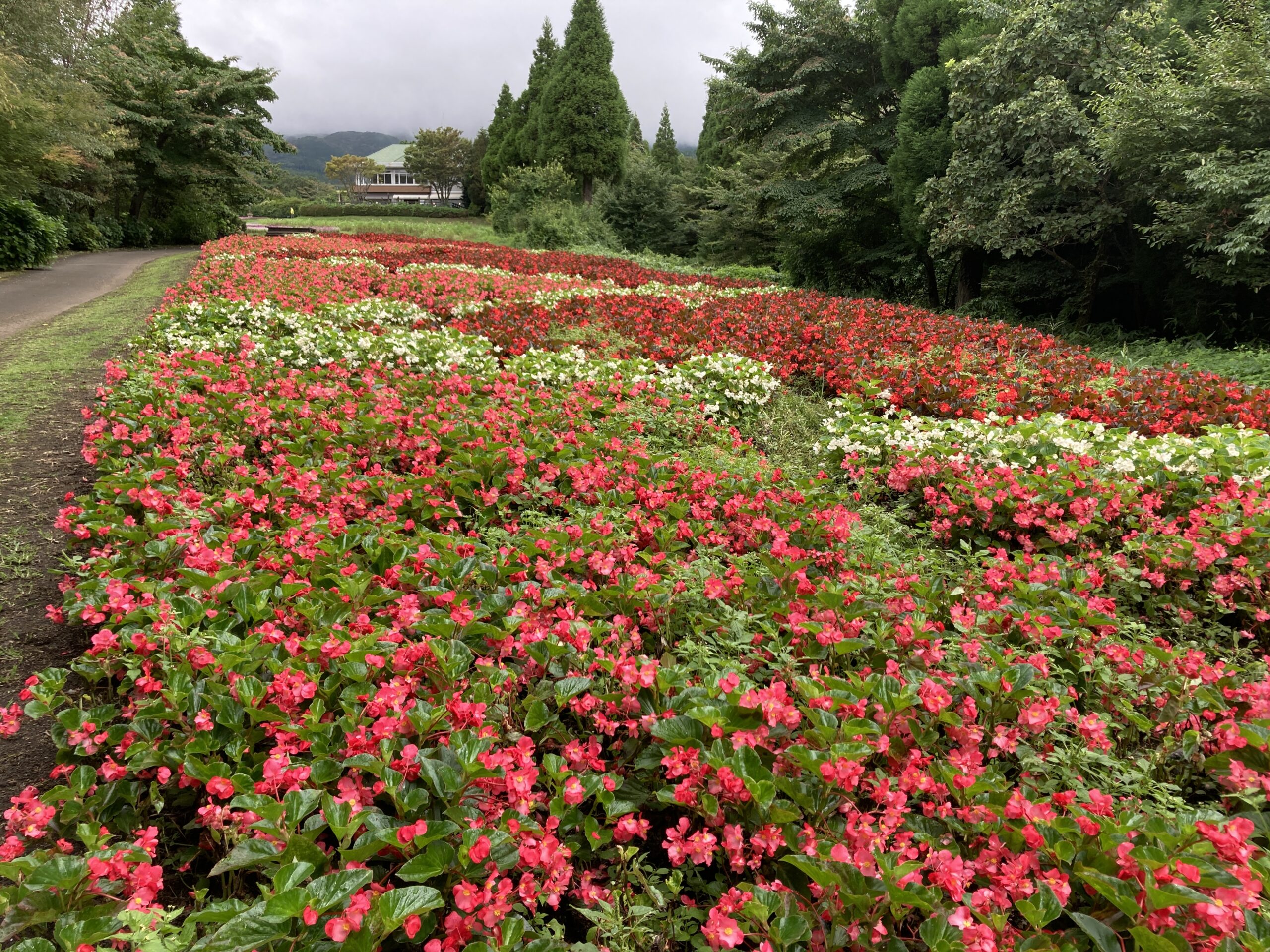 小川を挟んだ隣の四季彩の丘の下ではベゴニアが見頃を迎えています。