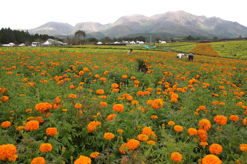本日のマリーゴールドの様子。 先日に比べてお花の数が増えました。 週末までには見頃の案内となりそうです。