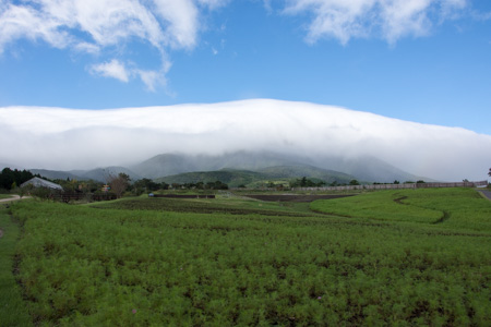 台風一過で青空が見えてきたよ~。 . . そよ風の丘のマリーゴールドが、少しずつ開花してきた様子。 . . 久住山にかかる雲がすごいことに! . . コスモス畑の様子。こちらからの雲もすごい! そして、虹が!↓ . . 台風が過ぎたあとの空模様はおもしろいね~♪ . くじゅう花公園2017カレンダーができました!