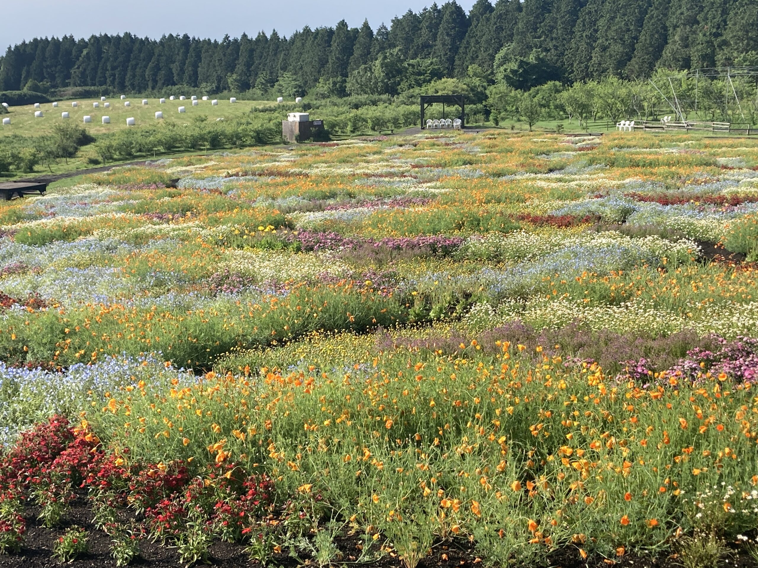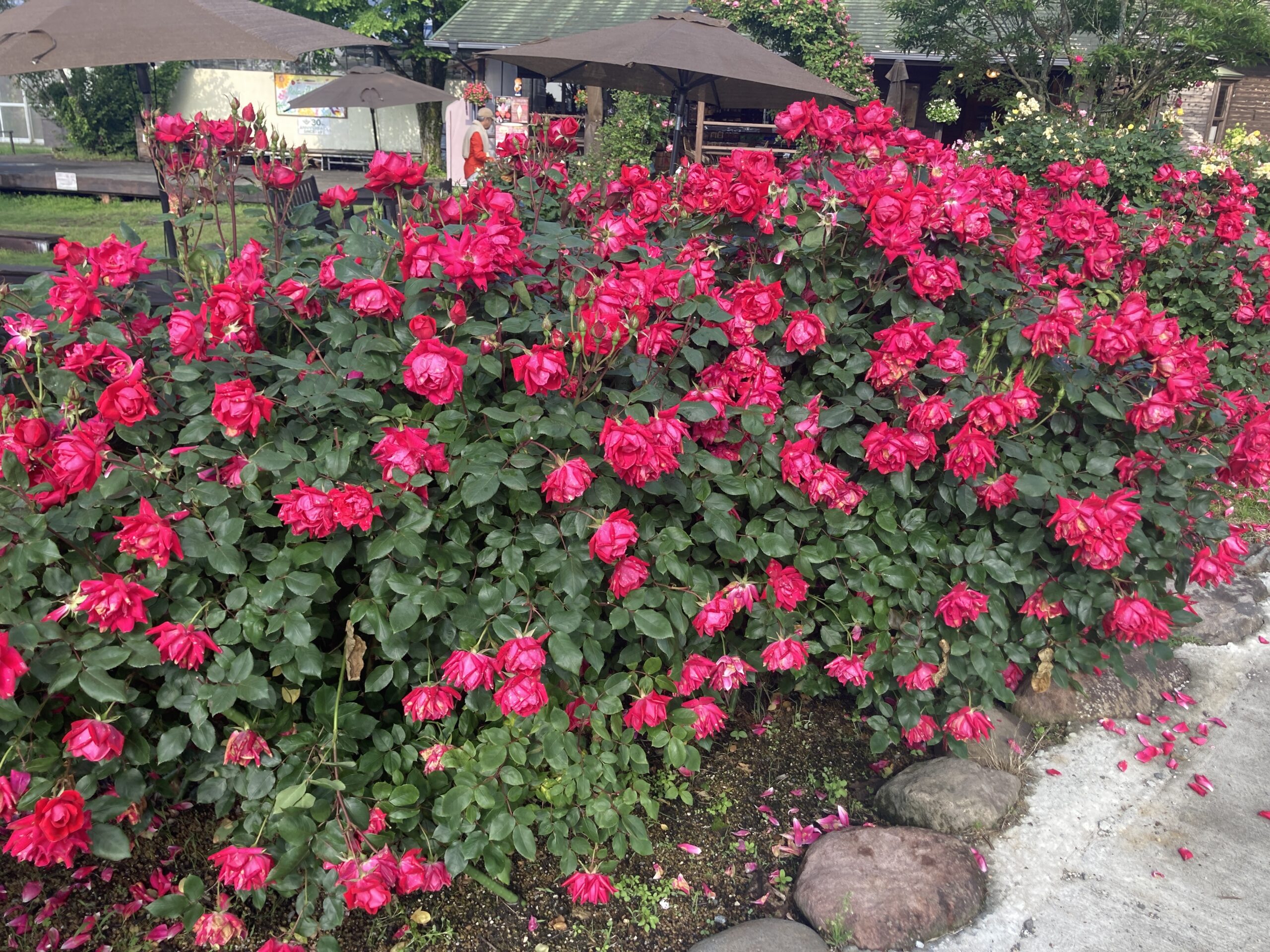 やはり大雨の影響が... バラは咲いているものは傷みが出ています。 でも大丈夫!まだまだ蕾がたくさんあります! 期間限定のバラの泉は終了です。 足元にたくさんの花ビラが散乱しています。 今日、明日の晴れ間で一気に復活を期待しています。 春彩の畑はまもなく終了となります。 雨の影響で終わった花もありますがハナビジソウなどまだ見て頂けます。