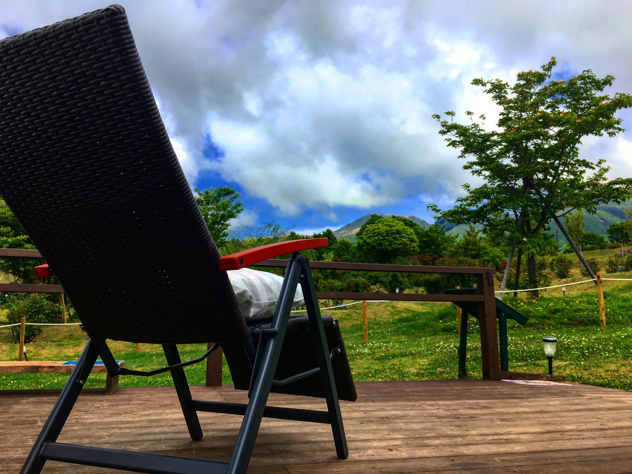 リクライニングチェアーもあり、テラスでゆっくりと過ごすことができますよ♫