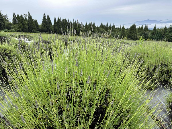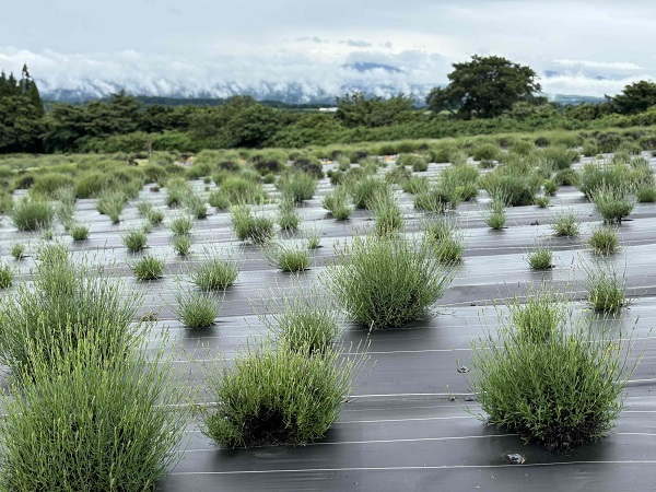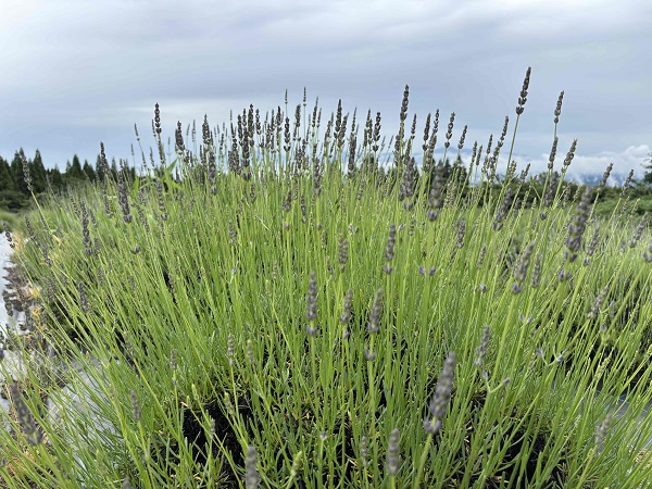 6/23現在のラベンダーの開花状況 薄らと色づき始めました。日増しに色が濃くなっています。 6/28(土)より摘み取り体験実施の予定となります。 近づくと薄く色づいた状態が分かります。 畑全体的にはまだ青みが強い状態です。