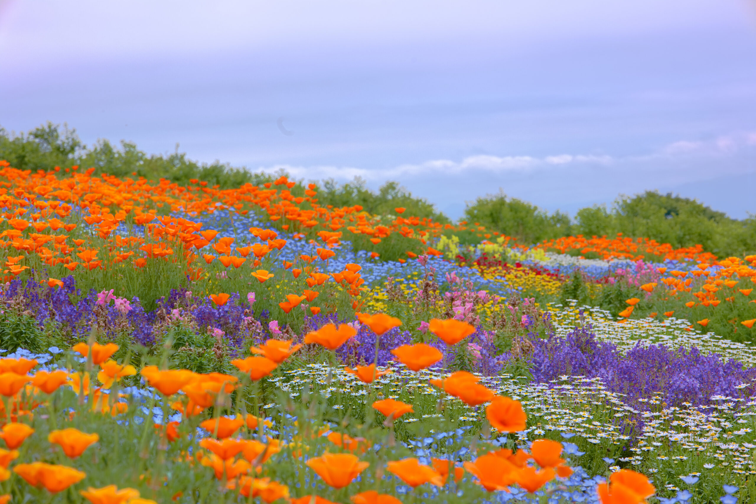 5月中旬頃からこのオレンジ色のハナビシソウが約2万株大きな畑「そよ風の丘」で見られます!