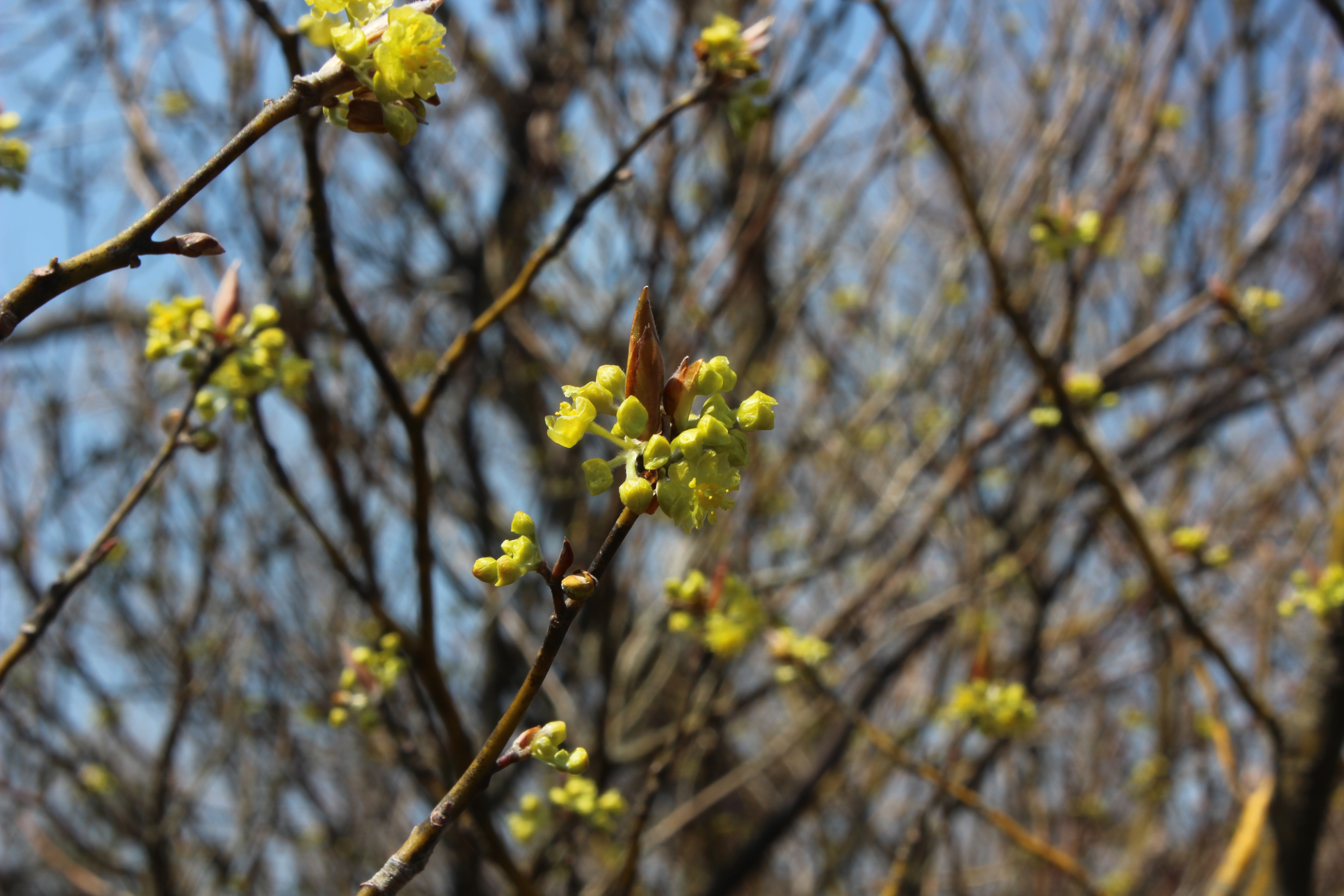 ・ 春の始まりは、不思議と黄色の花が目立ちます。 今年もクロモジ(黒文字)の小花が咲きました。 ↓ ↓ ・ ・ 写真では分かりにくいのですが、 若枝の樹皮にでる黒い斑点斑紋が美しく、 枝を折った時香りが良いところから、 和菓子の高級つまようじのて利用されています。 ↓ ↓ ・ ・
