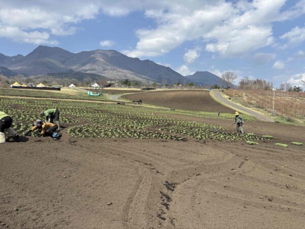くじゅう花公園最大の畑!高原の彩りの植栽がスタート!! この広い畑に約70,000株の苗を4日間で植えて行きます! 昨日より始まって今日は2日目!一番下の畑を今日中に完了させます。 来週頭には上の二つの畑を実施してすべての植付が終わる予定です。