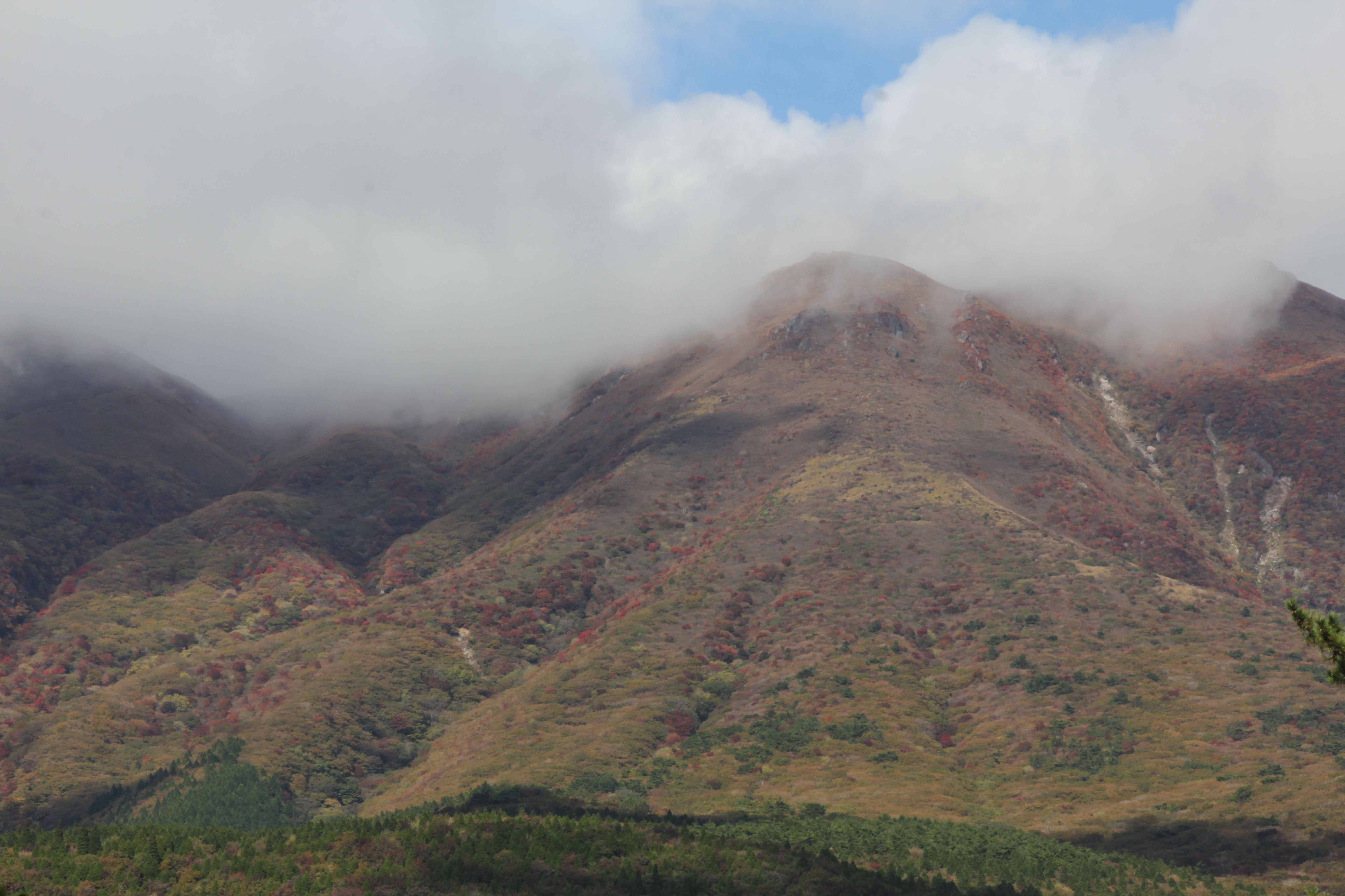 くじゅう連山の紅葉がさらに深まり、一段と美しくなりました。