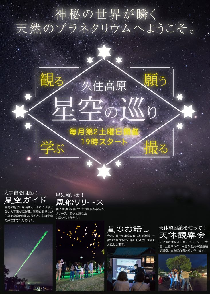 久住高原星空の巡りイベントは、毎月第2土曜日に開催いたします。