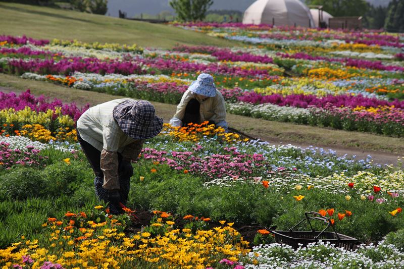 春彩の畑 見 頃 ** 彩りの丘 春彩の畑には 春のお花12種類のお花を植えています。 どの花も色も美しい。 花々が織り成す絶景が広がります** ↓ ↓ ・ 花も育てば草もぐんぐんと伸びてきます。 今日は除草作業に入りました。 ひとつ、ひとつ、丁寧に行う作業を風景は、 お花への愛が伝わります。 春彩の畑は5月末頃まで予定。 ↓ ↓