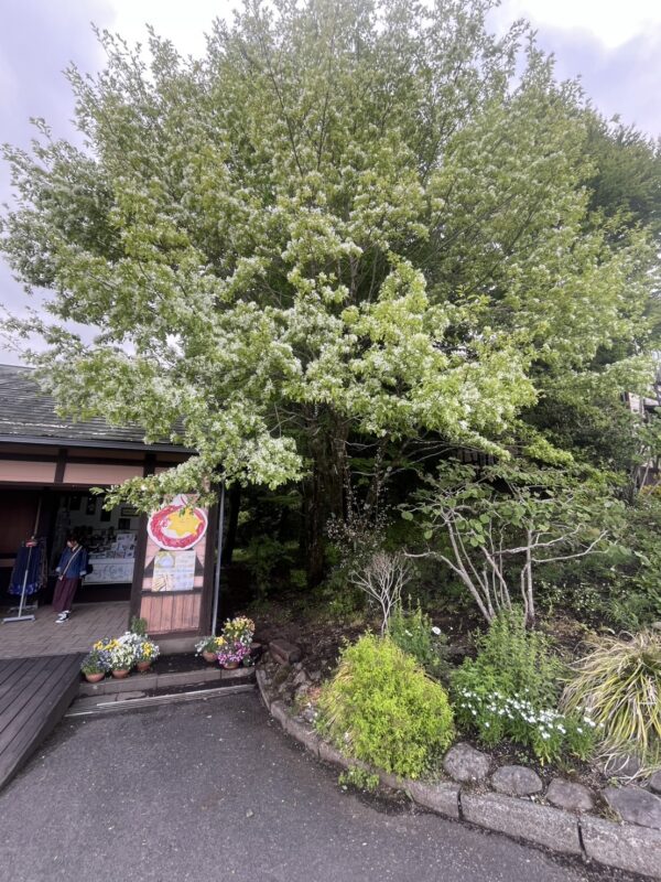 空を見上げると、、、、、、 なんじゃもんじゃの花が咲いていました。 ↓ ↓ てしごとガーデンさんの店先で咲いています。
