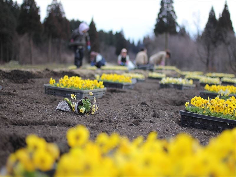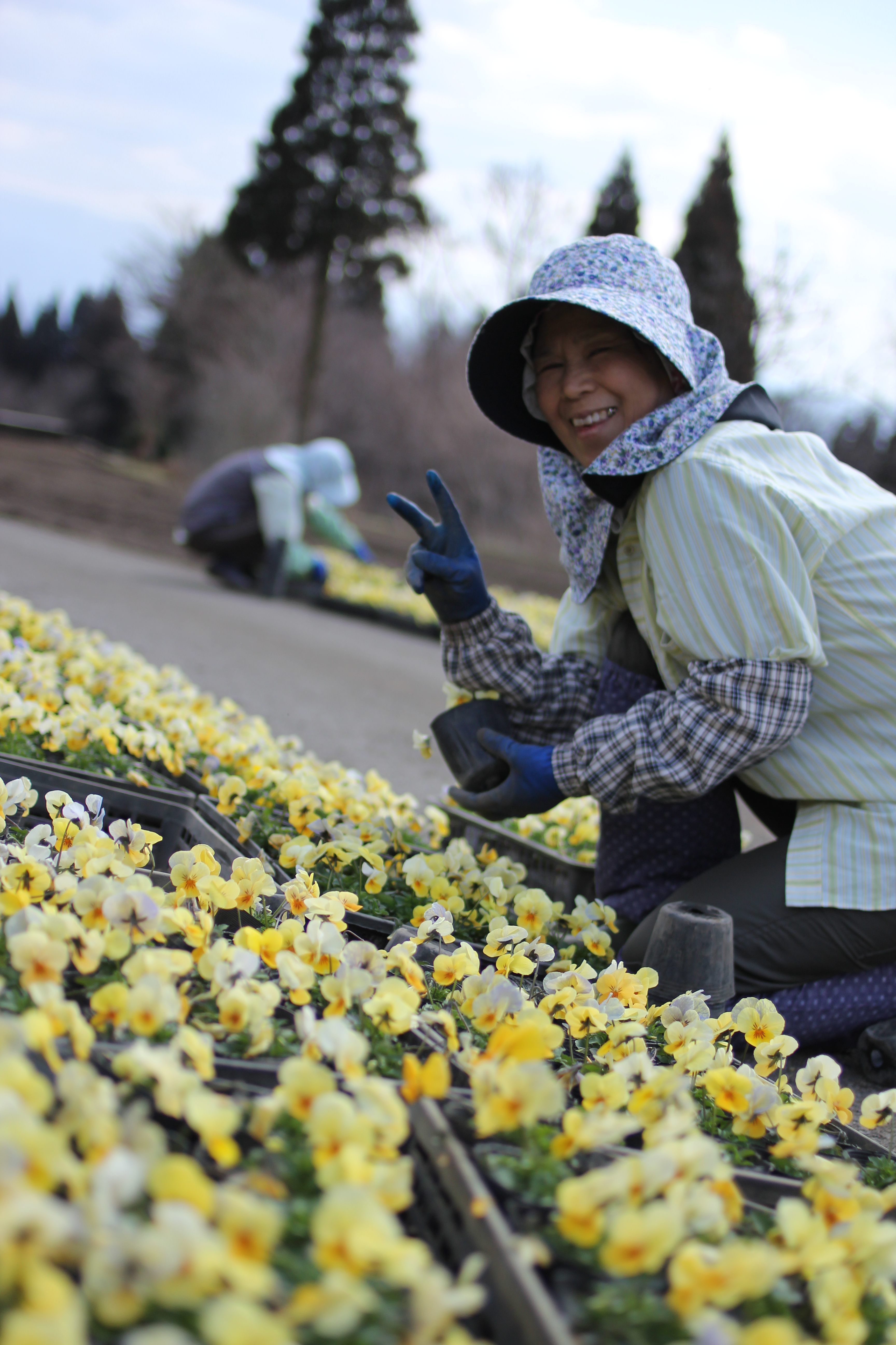 / 花が好き。仲間が好き。 ここへ訪れる旅人が好き。 この笑顔からは、そんな思いが溢れています。↓ ↓ ・ ・ 今年も沢山の旅人の笑顔をみれるよう、 パンジーの植付け作業が進みます。 ↓ ↓ ・ ・ ・ テーマ : つながる心(架け橋) をテーマにグラデーションに植付けをしております。 ↓ ↓ ・ ・ 四季彩の丘に広がるパンジー 3分咲き のご案内です。↓ ↓ ・