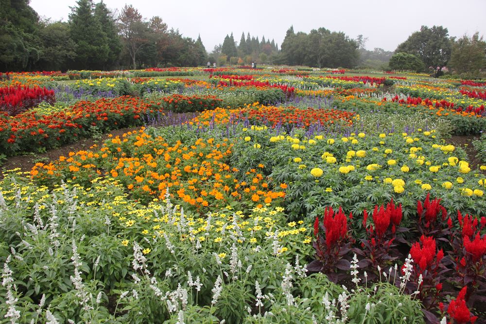 霧雨模となりましたが、 お花たちはしっとり美しく輝いています。 本日より「秋のお花の寄せ植え畑」が見頃となりました。 ケイトウ・マリーゴールド・サルビア・ジニア・などの お花のパッチワークとなっています。 是非、園内そよ風の丘へお立ち寄りください。