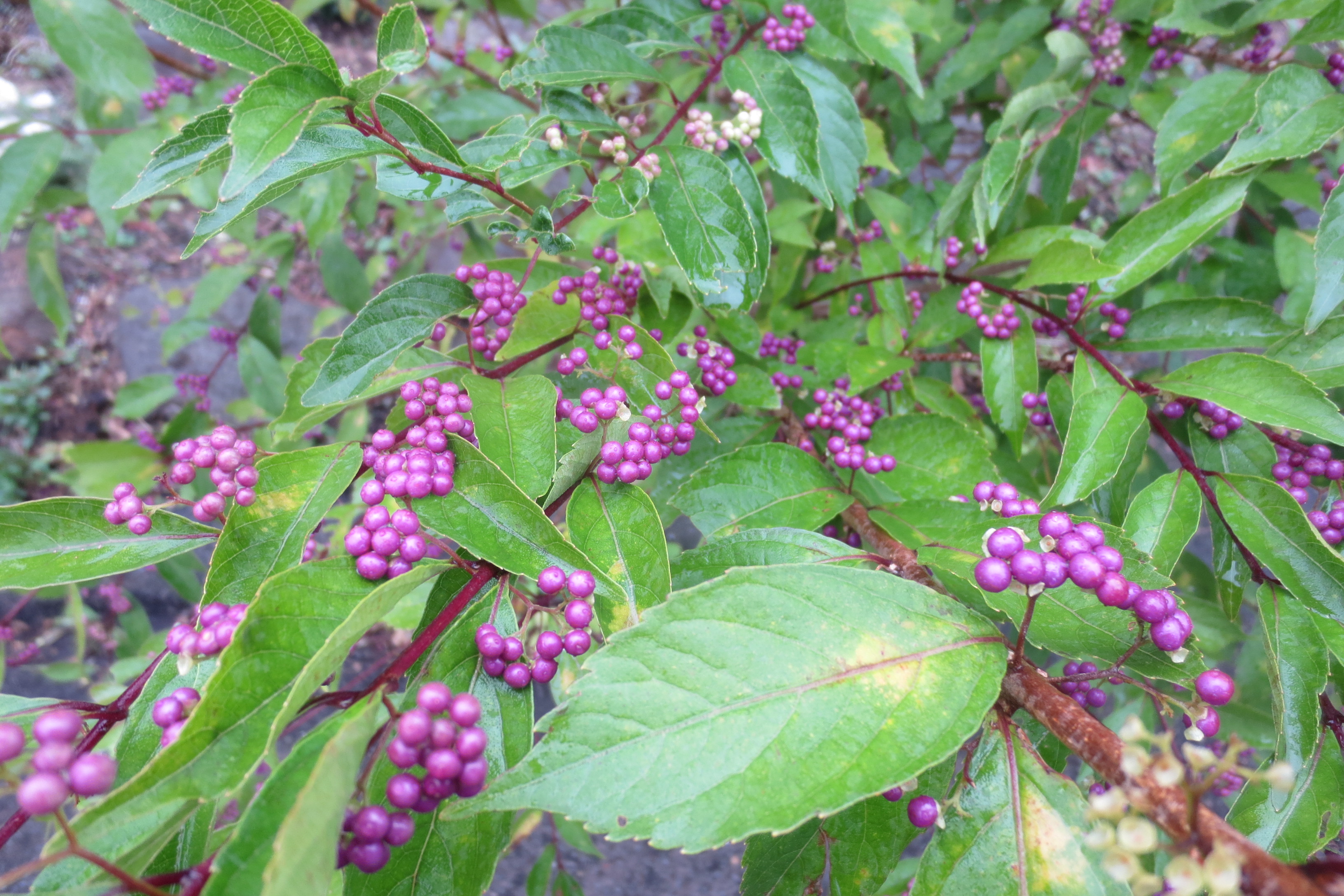 ・ ムラサキシキブらしくなりました。 お花が咲く頃も美しいのですが、秋の実が上品で美しい限りです。 花 言 葉 : 上 品・ 聡 明 文才があり、頭がとても良かったとされる 紫式部のイメージから花言葉がきているのでしょうか.....。 花言葉もまた、面白いですね。 ・
