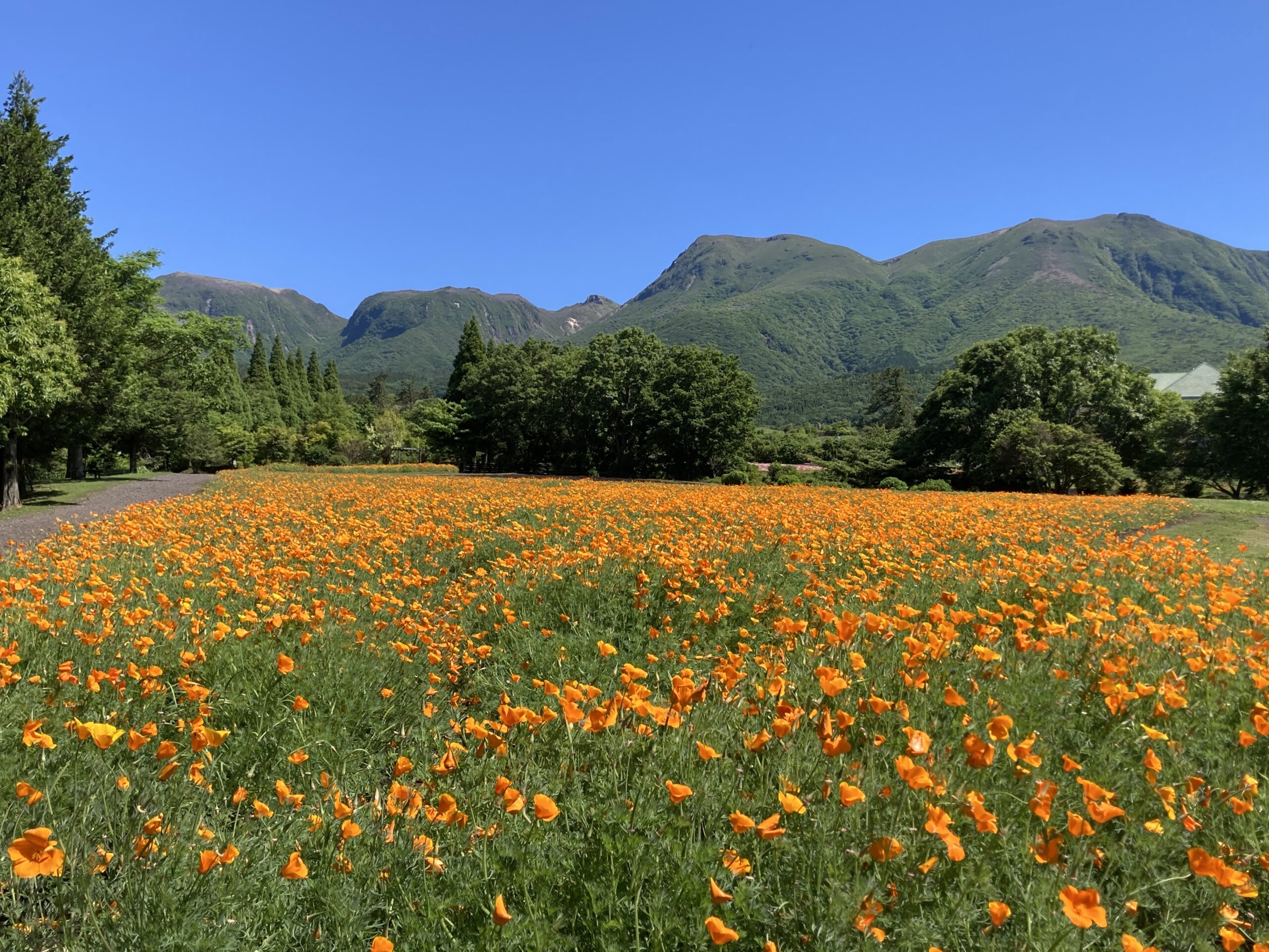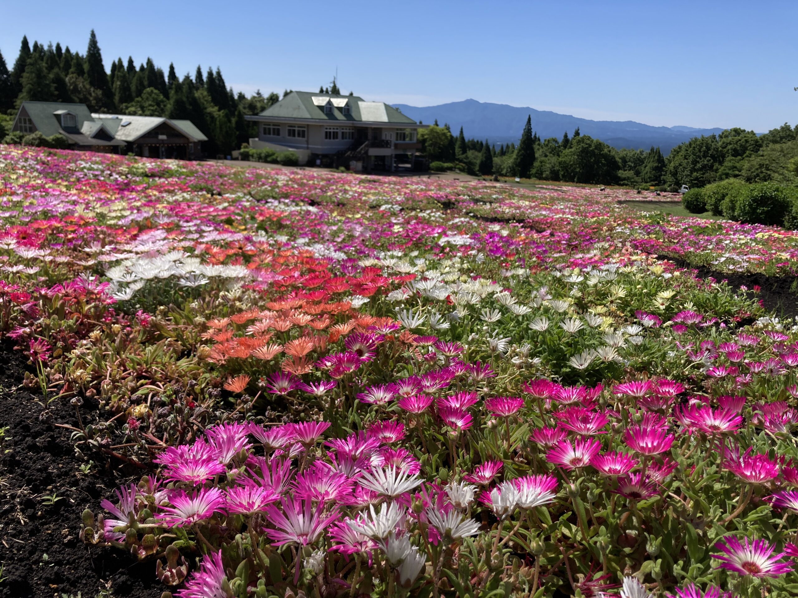 ■くじゅうガーデンは雨の影響でキンギョソウやディモルフォセカなどが倒れましたが