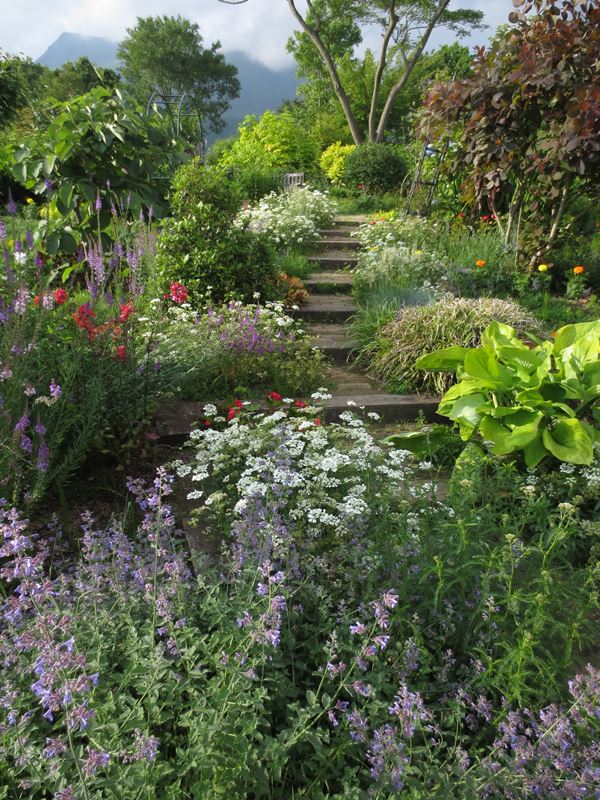 ・・ ゆっくりと歩きたい癒しのガーデン。 ここは 久住ガーデンエリア 私の大好きな初夏のお花たちが 心地よさそうにガーデンを彩っています** この階段を上がると大きなネムノキが木陰を演出。 癒しの空間が広がっています。 ↓ ↓ /