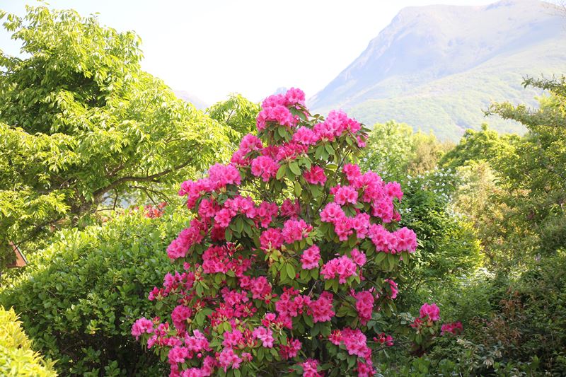 セイヨウシャクナゲが一際目を引き、存在感を感じます。 大きく豪華な花をつけるところから、「花木の女王」と呼ばれています。 また、堂々としていておごそかな様子から、 花言葉は「威厳」(いげん)などと呼ばれています。 園内久住ガーデンでみる事が出来ます。
