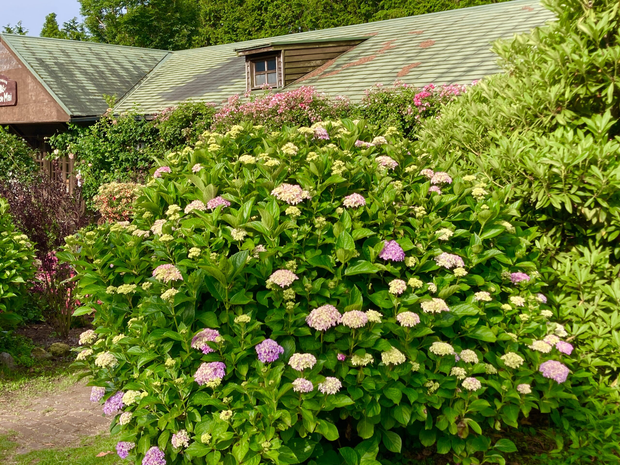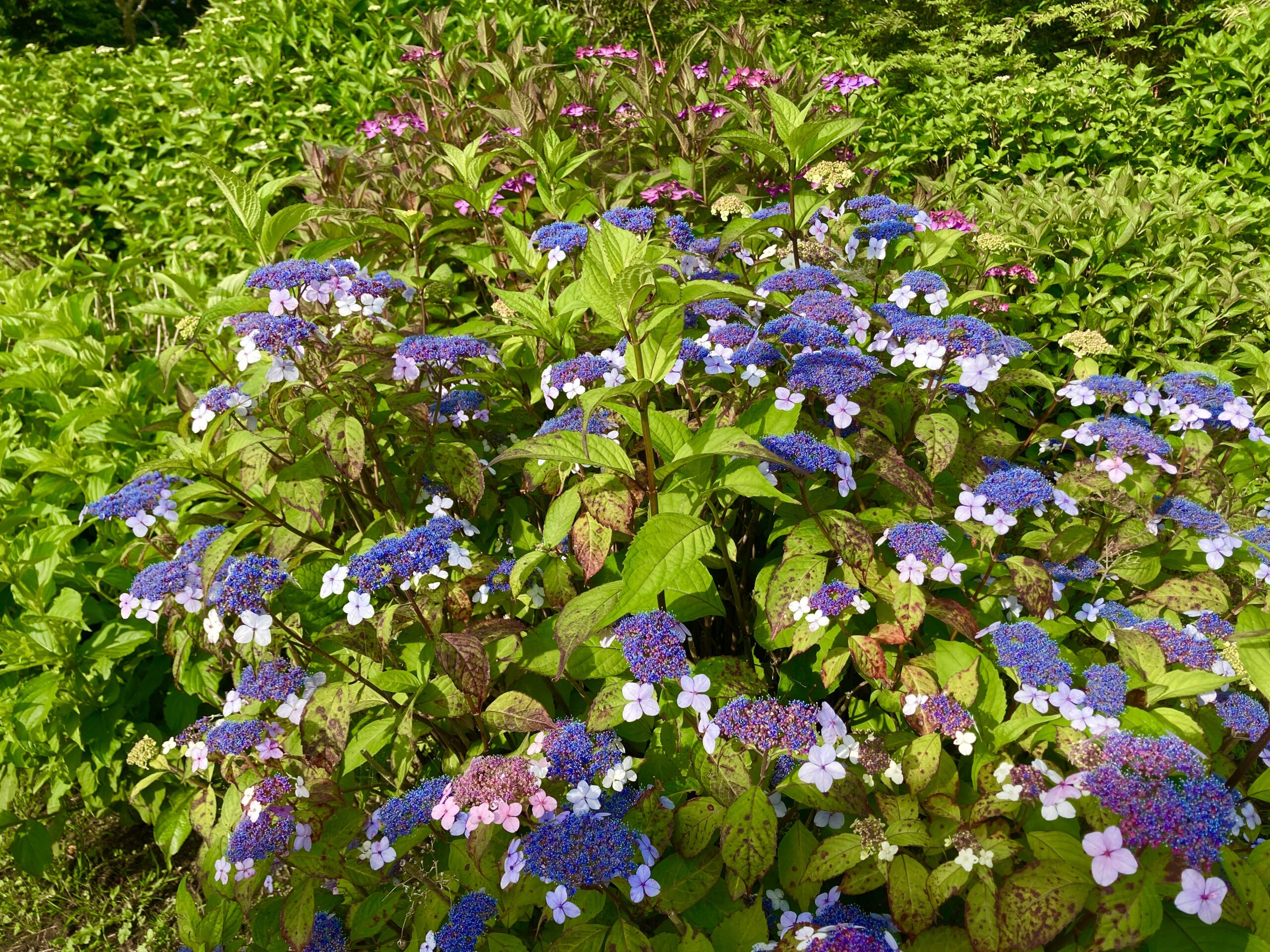 クレマチスガーデン近くでは山アジサイが見頃です。