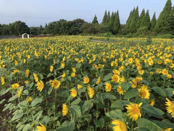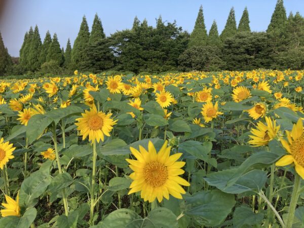 朝日の昇る方向に整列!みんな東の空に花を向けています。