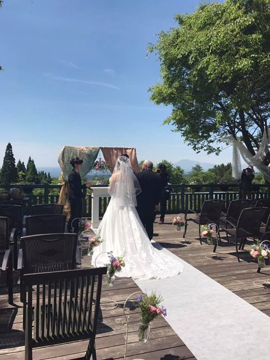 ・会場は阿蘇五岳とお花畑が一望できる、カフェテラス。 ↓ ↓