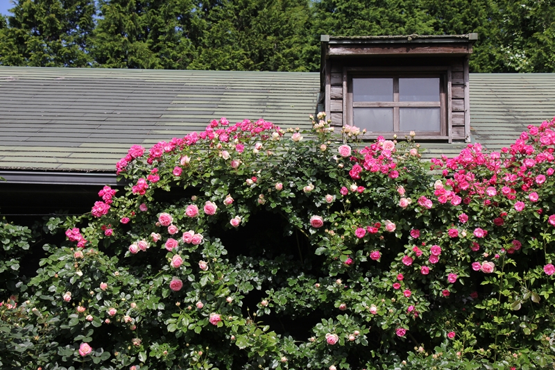 人気の写真スポトバラの壁は週明け頃に見頃となりそうです**