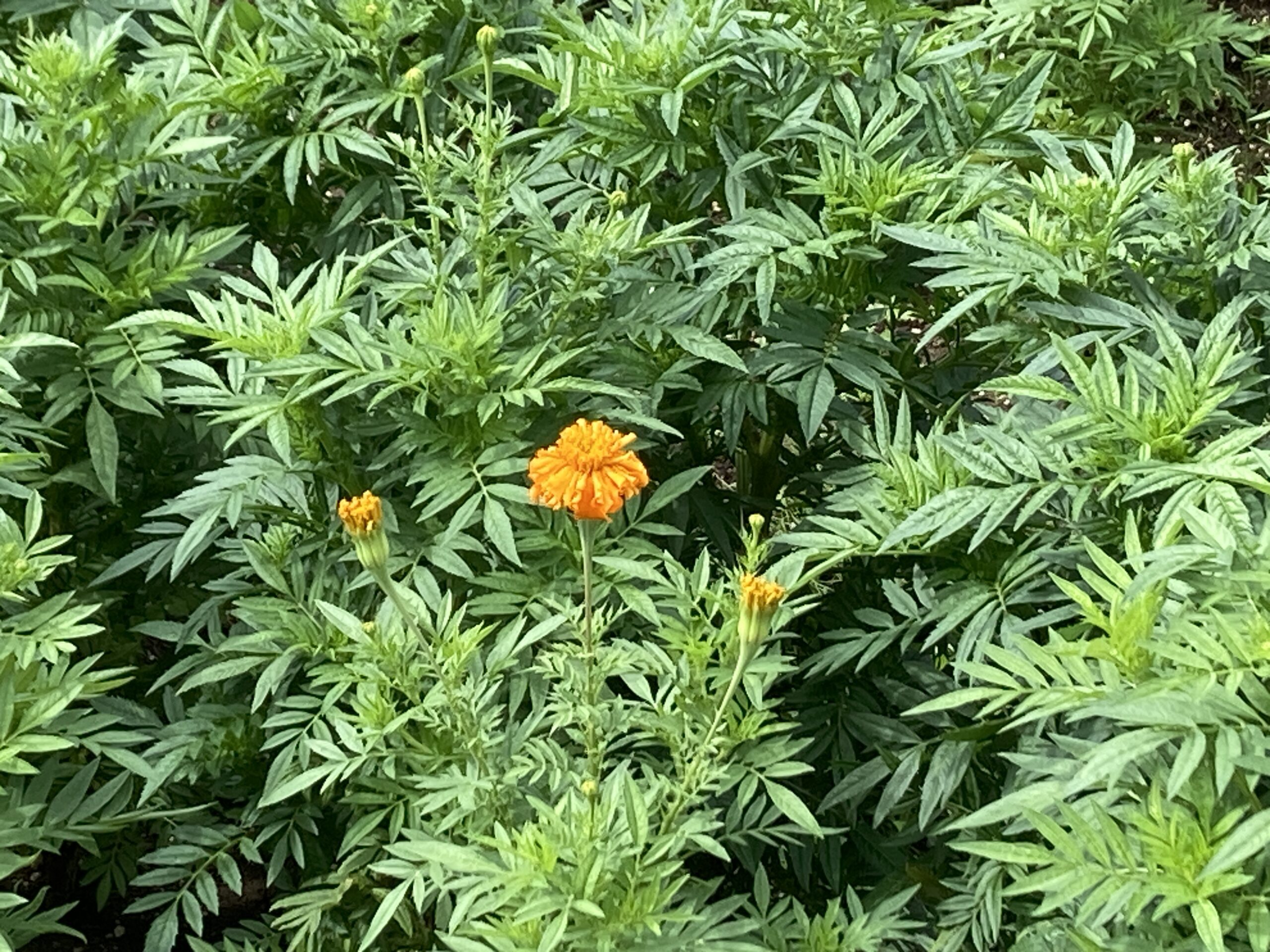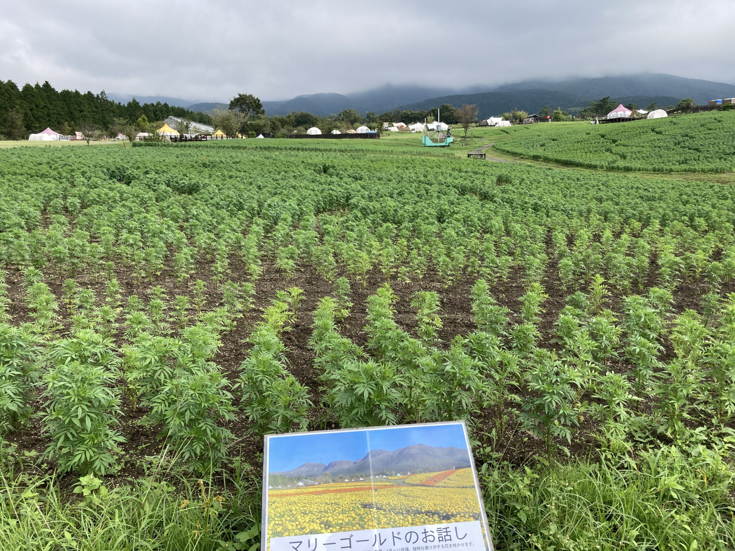 高原の彩りではマリゴールドが順調に成長中です。9月下旬ごろから見頃になります。