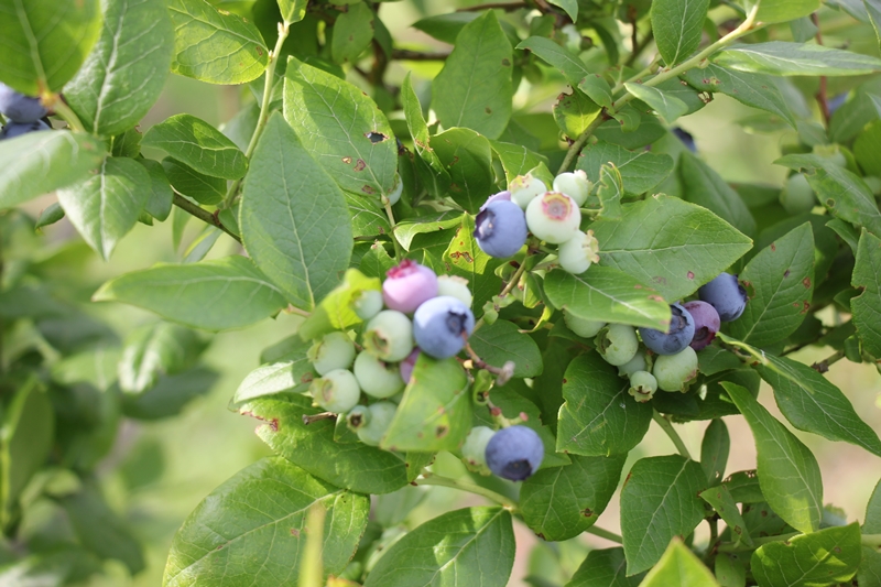 早生品種のブルーベリーが色づき始めました。