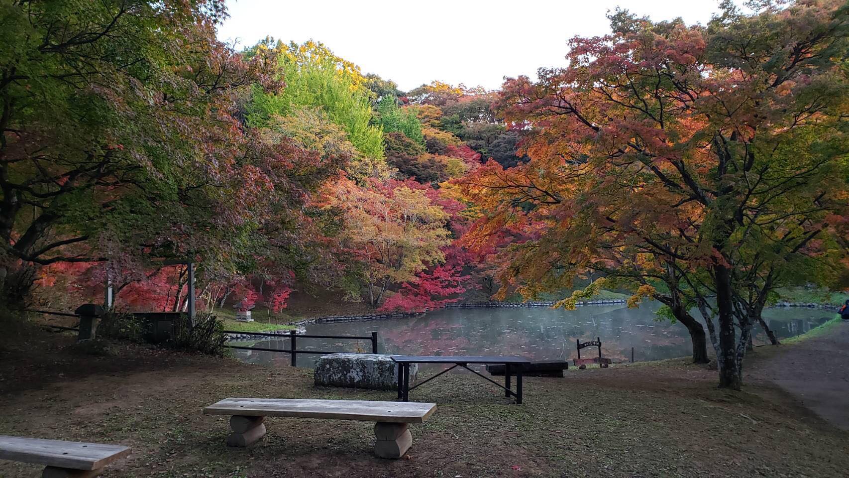 ・ くじゅう花公園から車で約30分ほど行った 用作公園(ゆうじゃくこうえん)の 紅葉が今まさに見頃。 ライトアップもあるそうです。 11/9、10、15、16、17、23、24 日没〜21時 〒879-6213 大分県豊後大野市朝地町上尾塚 お問い合わせは、豊後大野市朝地支所市民係 電話番号 0974-72-1111 ・ イロハモミジにイタヤカエデなど、 美しく秋色に染まっています。 ・ ・ 夜になるとライトアップもありますよ。 湖面にうつりこむ紅葉が幻想的ですよ。 ドライブの途中立ち寄ってみてはいかがでしょうか。 ・