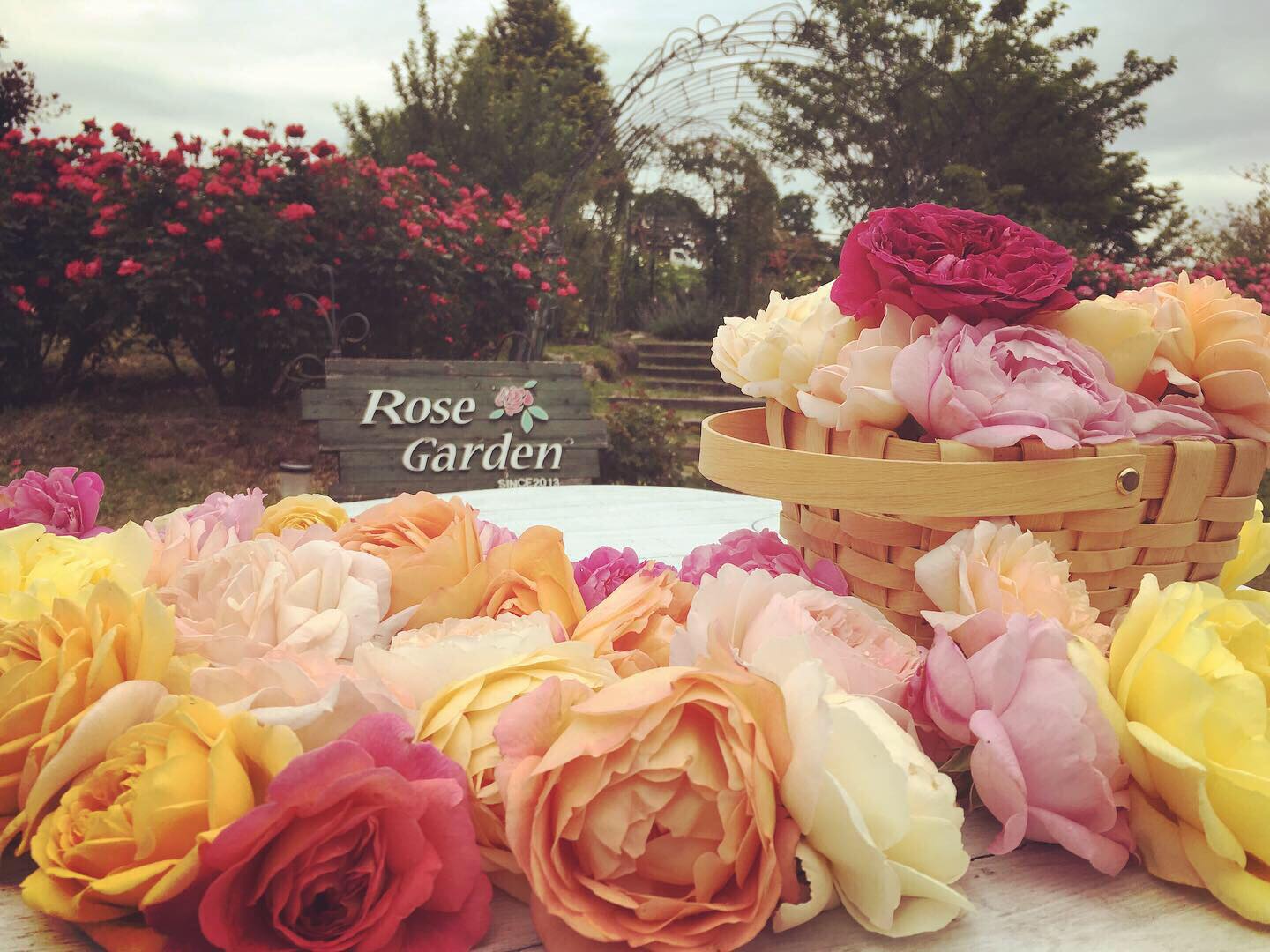 実際にローズガーデンのバラを摘み取る作業から行います。