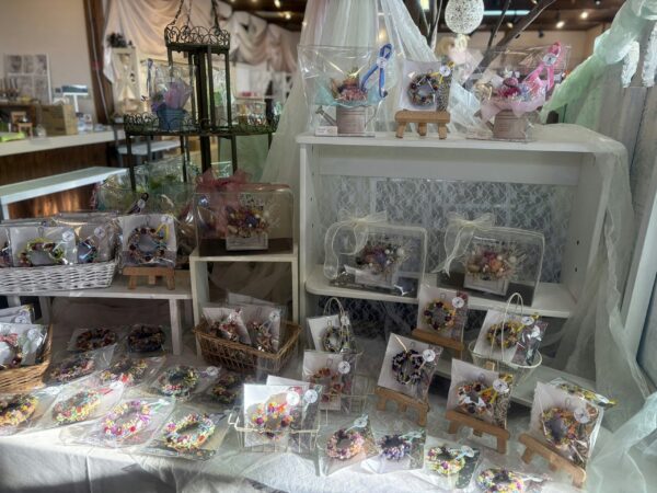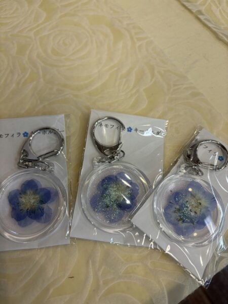 ドライフラワーと香りの雑貨のお店「Rose de Mai」 営業再開致しました。 昨年も人気だったオリジナルフラワーアレンジメントもバージョンアップ! いろいろ種類が増えて楽しめます。お好みの1品を見つけるのも楽しみのひとつですね。 くじゅう花公園のネモフィラを使った押花キーホルダーも超人気商品です!