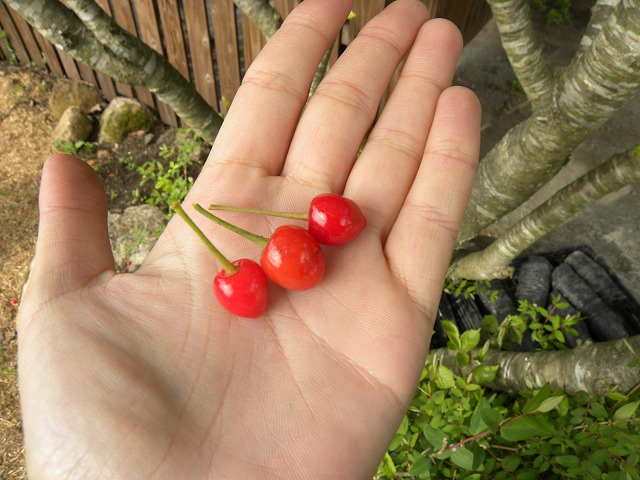 つい最近までサクラのお花が咲いて スタッフが喜んでいたのですが ↓↓↓ あっという間に木が緑に包まれ 真っ赤なさくらんぼの実ができました↓↓ 少し小さいですが・・さくらんぼの実です↓↓ 来年も沢山お花が咲いて、沢山さくらんぼの実ができますように♪