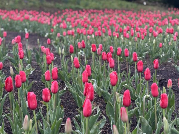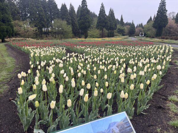 チューリップ3万本まもなく見頃!くじゅうガーデンでは見頃です。