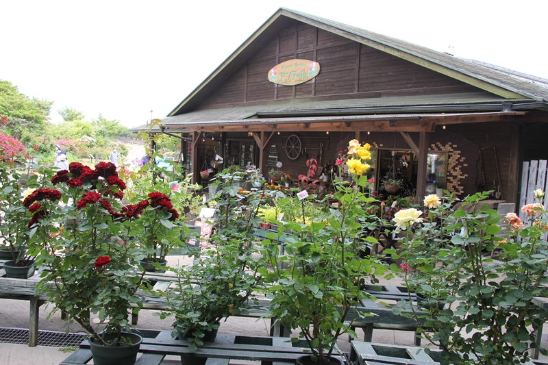 バラを楽しみながらカフェで優雅な時間を過ごせます。