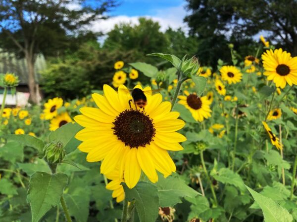 みはらしの丘の5万本のひまわりは順調に生育中です。