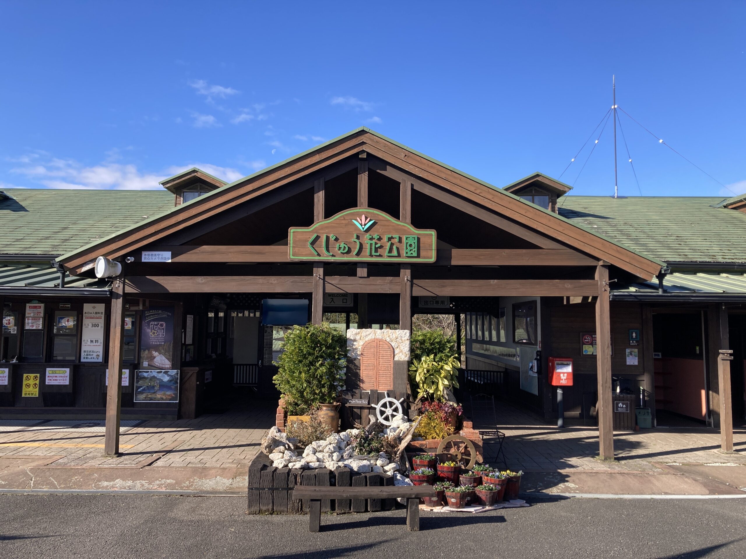 プレオープン後の最初の週末は天候に恵まれました。 花の見頃はありませんがペットと一緒にお散歩を楽しまれるお客様などがご来園。 温室アンティルでは少しですが花を見ることが出来ます。 又、写真スポットもありますのでお立ち寄りください。 園内のカフェやショップもまだ営業していませんが、駐車場前のお土産ショップ 「花の駅」は営業中です。大分のお土産も勢ぞろい!お立ち寄りください!