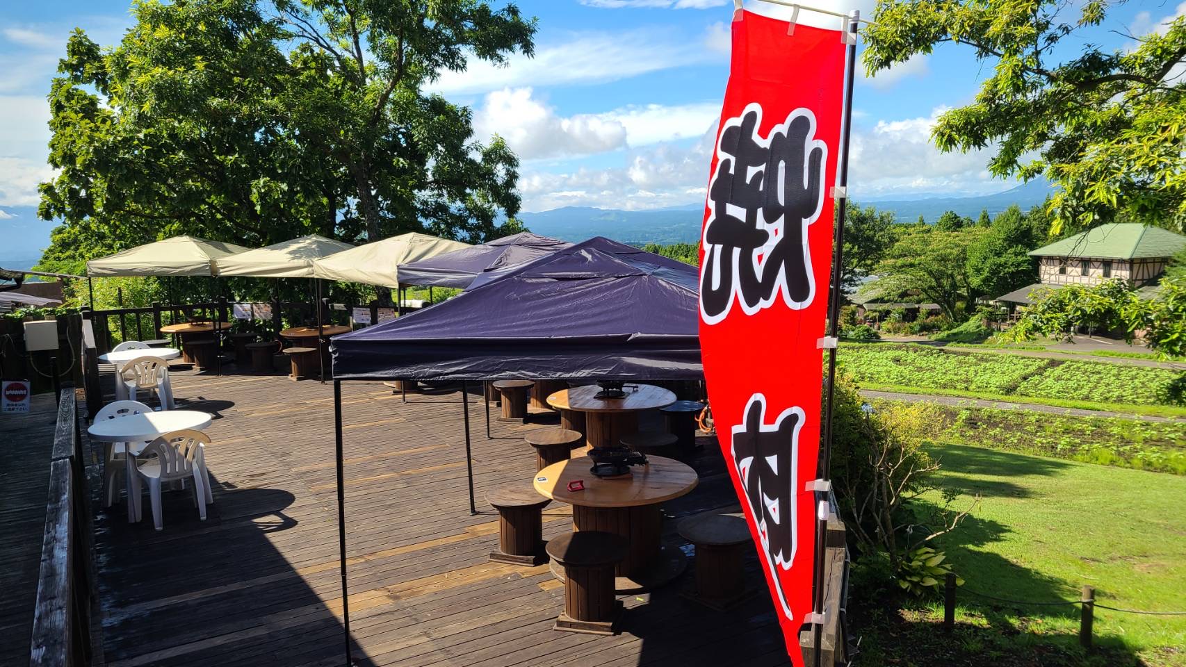 目の前がひまわり畑、遠くには阿蘇の五岳が見られる絶景デッキ!