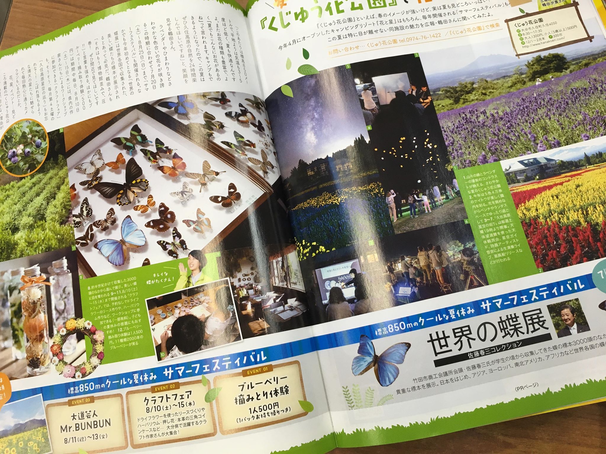 世界の蝶展やクラフトフェア・久住高原星空の巡り(毎月第4土曜日に開催)など、