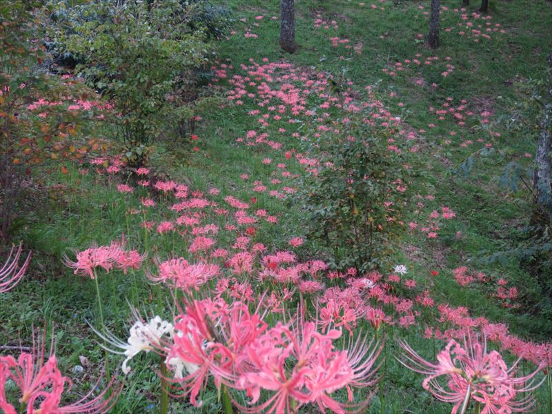 ・ 園内のヒガンバナが一気に咲きました。 早朝は朝日が照らされ、とても綺麗ですよ。 別名は 曼珠沙華 ・ 死人花 ・ 捨て子花 石蒜 ・ 天蓋花 ・ 天涯花 ・ 幽霊花 ・ かみそりばな 、 など、沢山の呼び名があったんですねっ! 花言葉は再会・情熱・また会う日を楽しみになど、 ↓ ↓ ・ ・