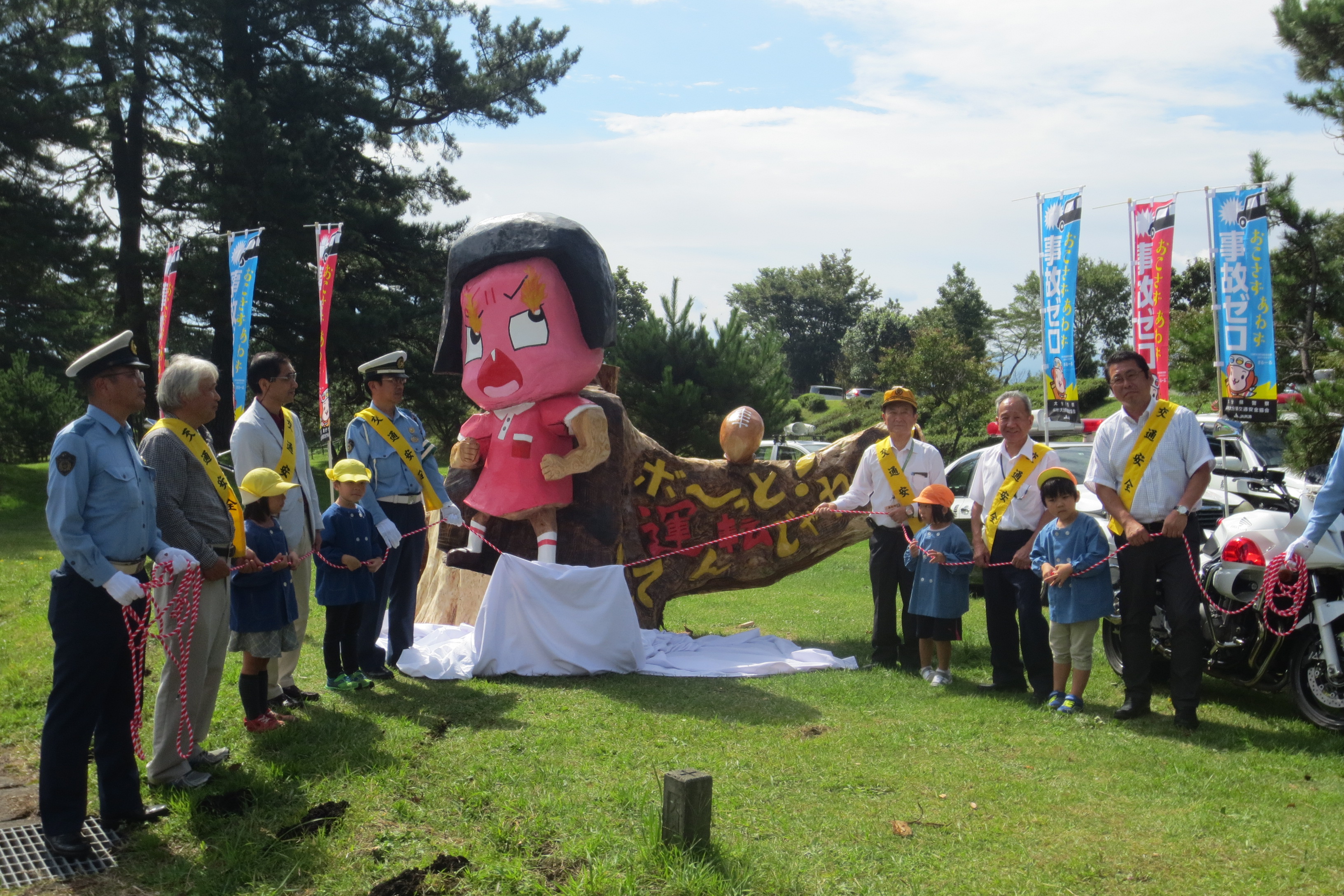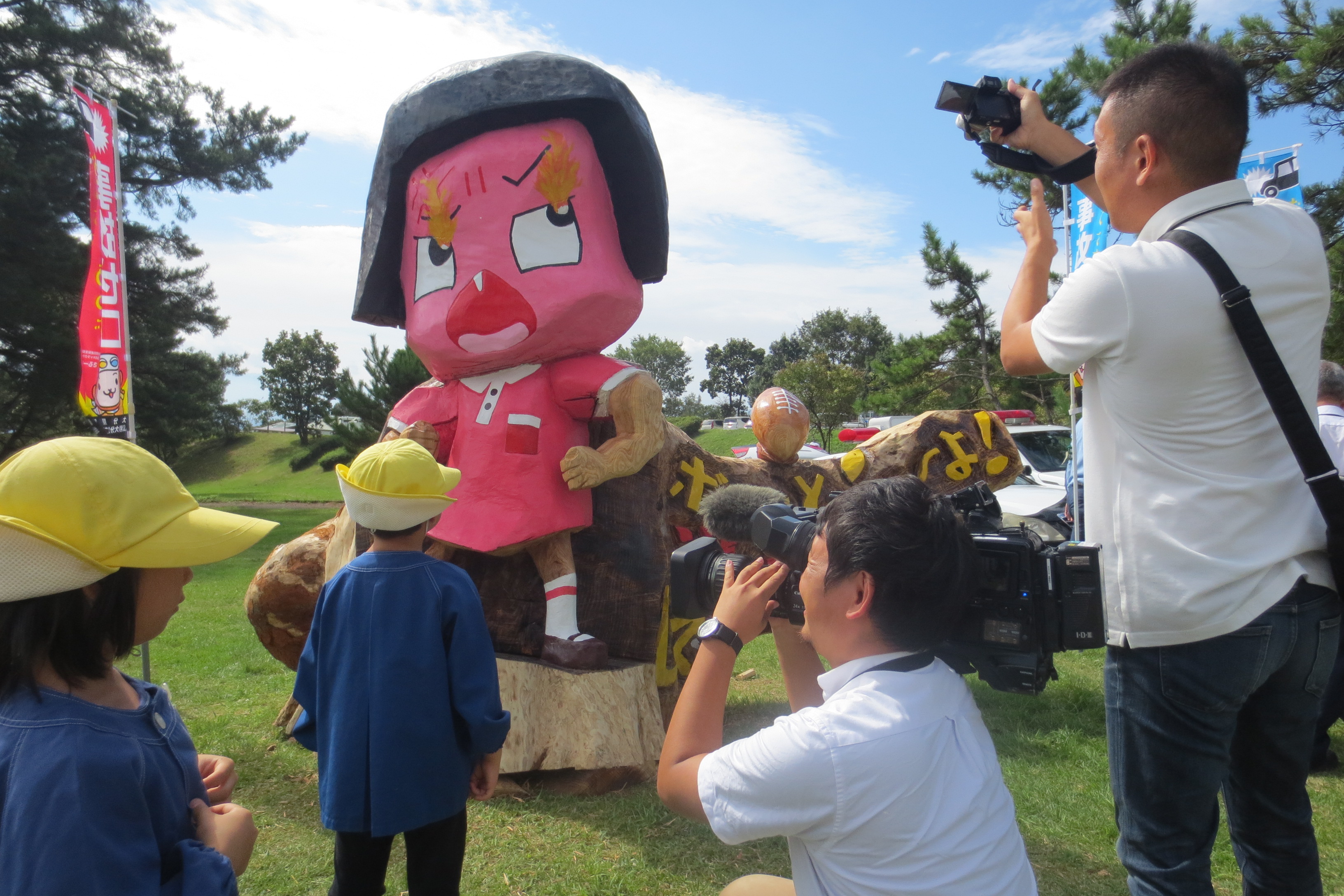 ○○ちゃんに叱られる?!巨大なオブジェの除幕式がありました。