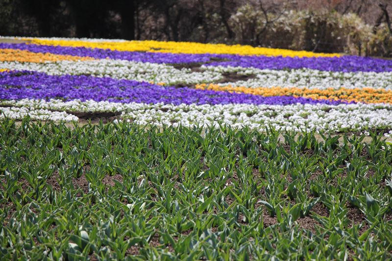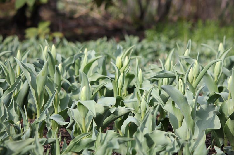 ・ そよ風の丘 3万球のチューリップ 生育中 今年はパンジーと一緒に楽しめるデザインとなっています** ・ 久住ガーデンチューリップコレクションのつぼみがふっくらとしてきました。 色や形個性的なチューリップが咲きます** ・ 早いものでは、つぼびが色づきはじめています。