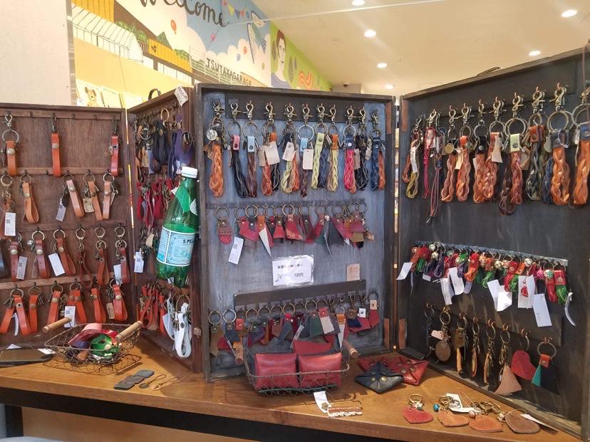 革ストラップや小物入れなどハンドメイド商品が揃います。