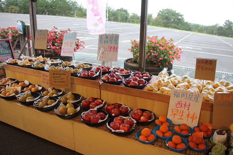 お土産総合ショップ850m「花の駅 」では、 季節のくだもの各種を販売しております。 ↓ ↓ ・ 大分県産の早生みかんや地元竹田産のカボスも販売しております。 入園しなくてもお買い求めいただけます。 ↓ ↓