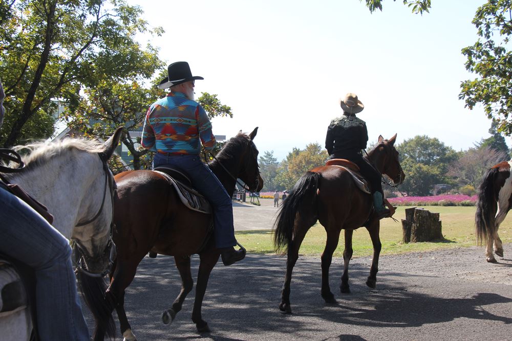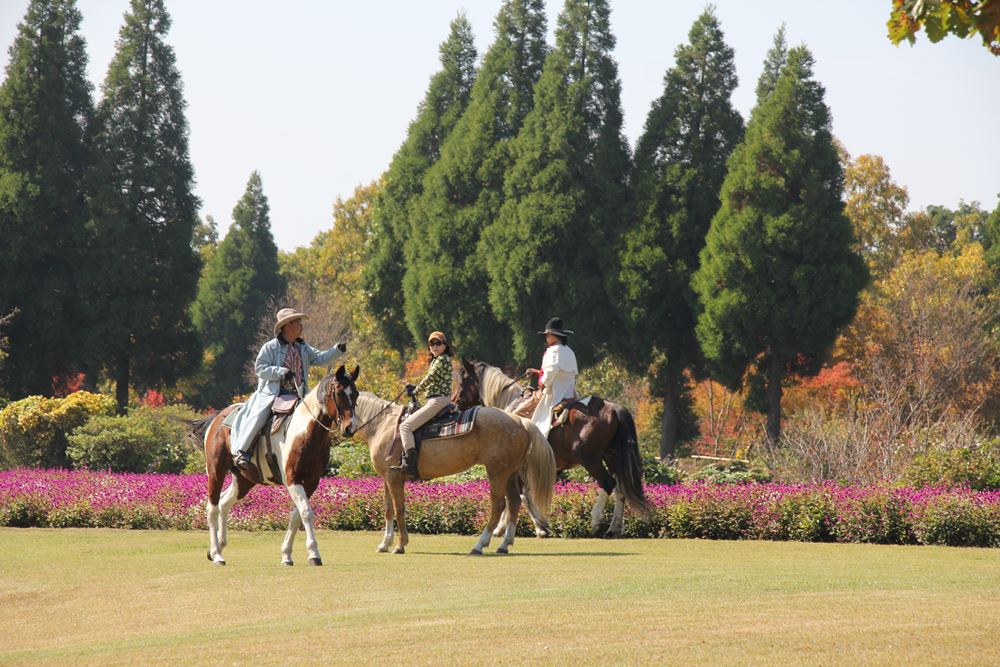 ようこそ、ココペリウエスタンライティングご一行様** 乗馬をしながら園内散策することができます。** 違った目線からの花畑散策も贅沢ですね。 ・ レゾネイト乗馬牧場 ココペリウエスタンライディングは、久住高原の大自然を生かし、 1歳の子どもから乗馬上級者まで楽しめる、全国でも有数の乗馬コースです。 くじゅう花公園のすぐ側にありますよ! ぜひ、お立ち寄りください。 ココペリウエスタンライティングHP ・