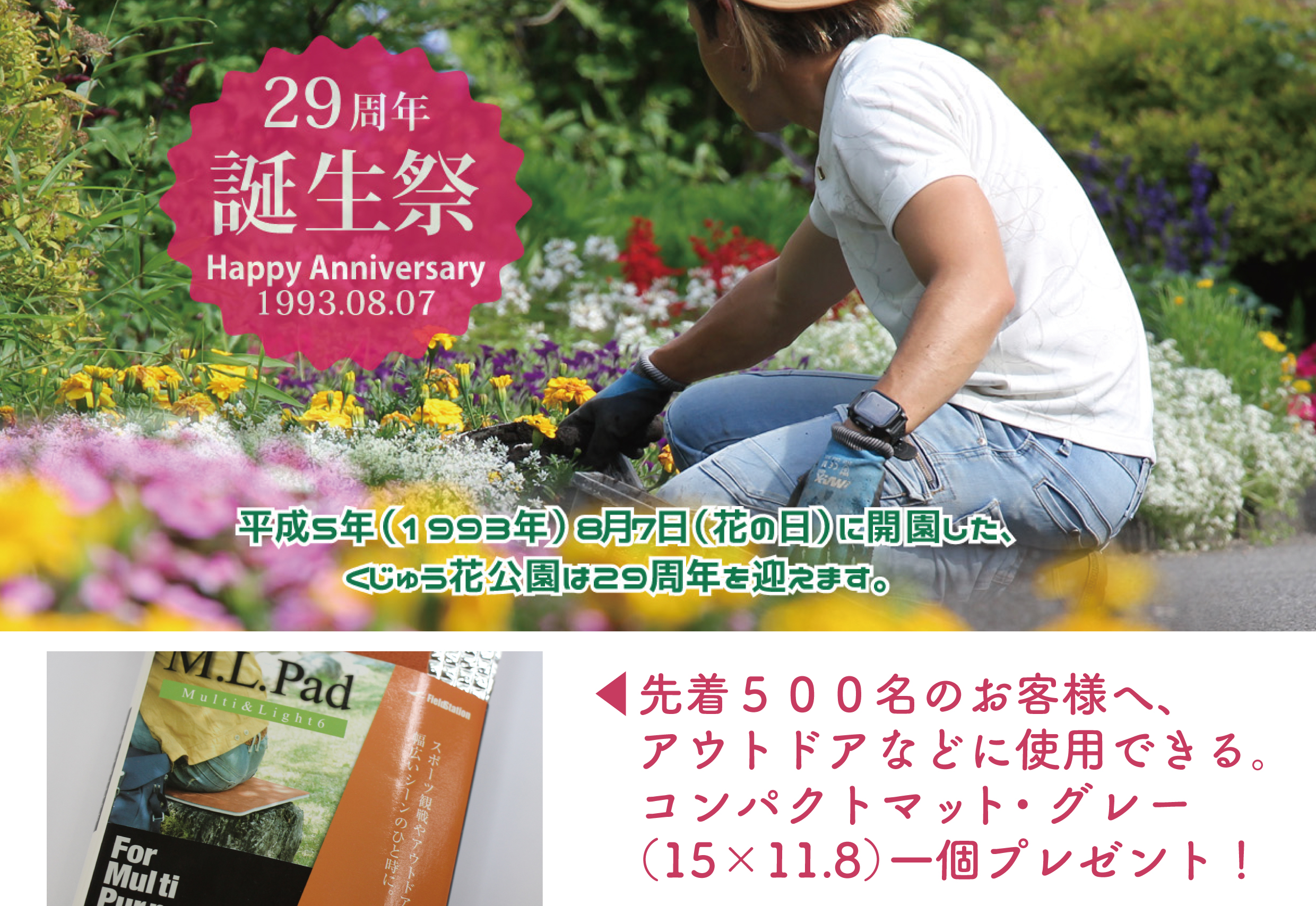 【お知らせ】8月7日(花の日)くじゅう花公園 開園29周年 開園記念日**
